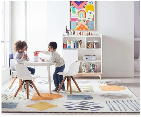 - En ce qui concerne la couleur, choisissez des teintes qui s'harmoniseront avec le reste de la décoration, tout en ajoutant de la personnalité à l'espace. Pour s'adapter à l'évolution des goûts de votre enfant, considérez des tapis unis ou aux motifs neutres qui peuvent facilement s'intégrer dans des thèmes variés au fur et à mesure qu'il grandit.